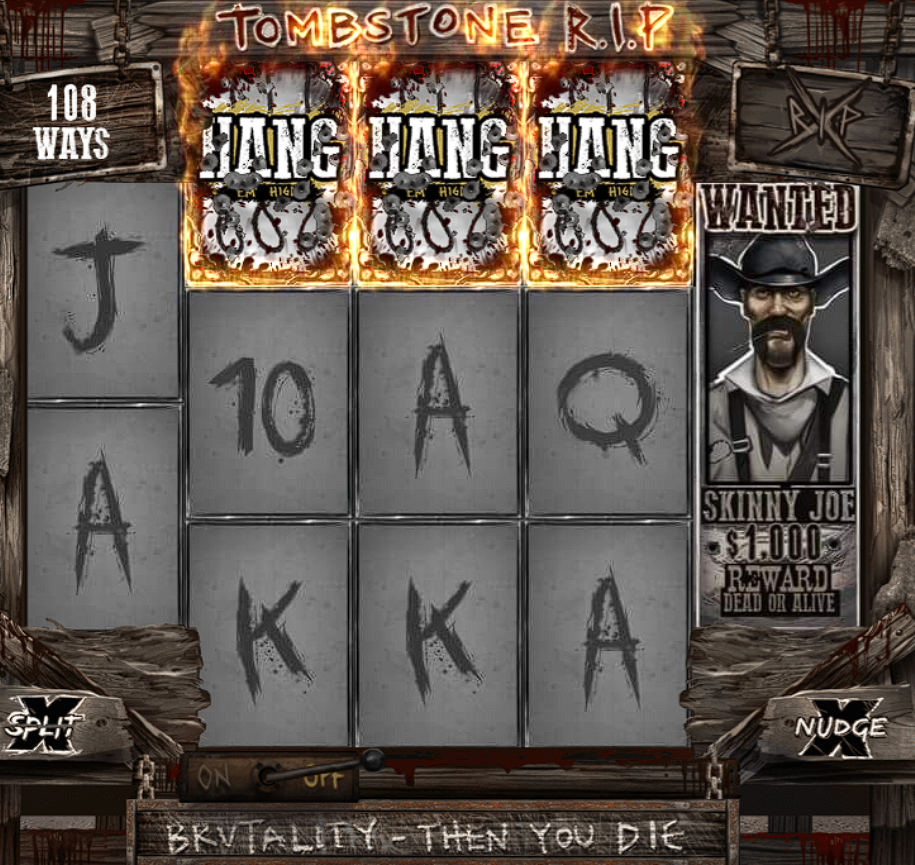 - Free spins trigger: Every 194 spins (Hang ’Em High).
