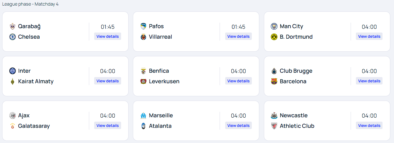 Matchday 4 always feels like crunch time. Teams are adjusting, pressure is building, and the gaps between qualification and disaster start to show. Expect huge clashes like Real Madrid vs. Bayern Munich, Arsenal vs. PSG, and Inter vs. Atletico Madrid that could decide entire groups.